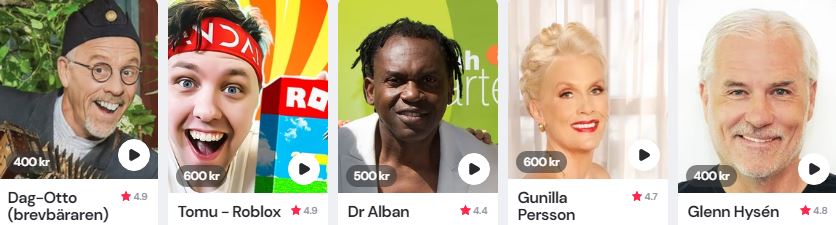 Önska god jul via en kändis – på Memmo.me finns möjlighet att skicka personliga videohälsningar som spelats in av kända personer. I utbudet finns något för dom flesta, oavsett ålder och intresse. En av dom kända profilerna är självaste jultomten men det finns även många andra kända ansikten – så som Edward Blom, Arvingarna och Sean Banan.